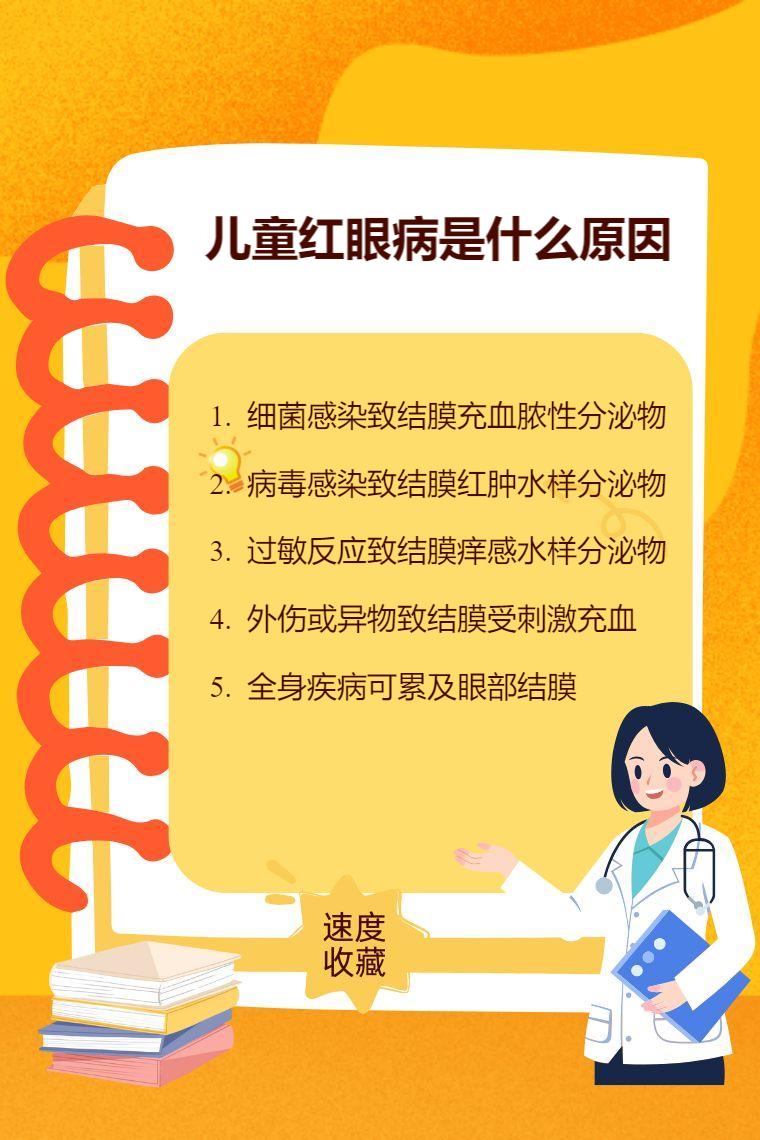 儿童红眼病主要由细菌感染、病毒感染、过敏反应、外伤或外界刺激、全身疾病累及等原因导致。
