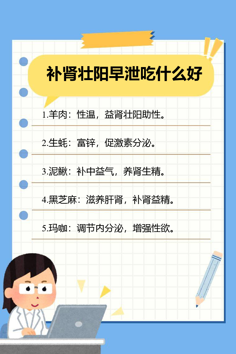 补肾壮阳早泄可食用羊肉、生蚝、泥鳅、黑芝麻、玛咖等。
