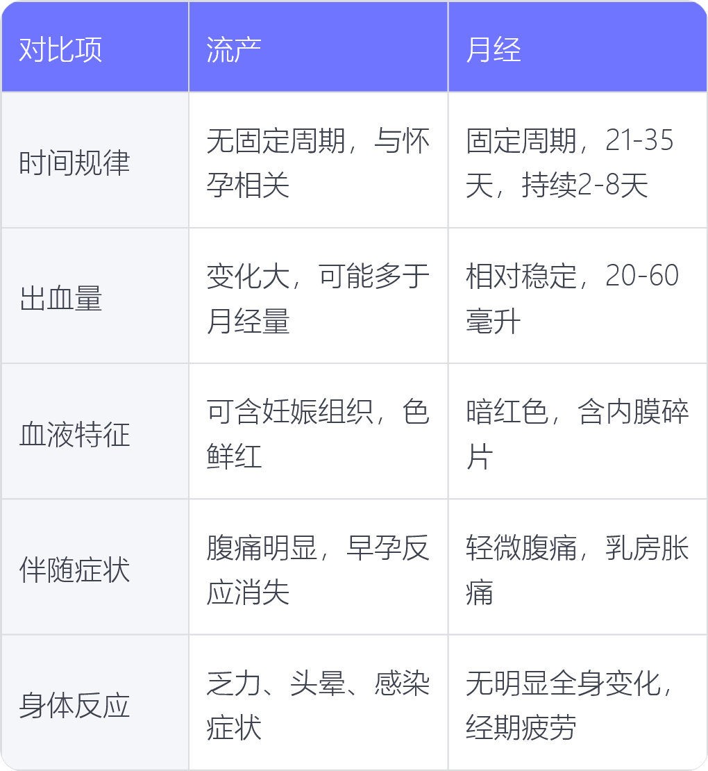 时间规律、出血量、血液特征、伴随症状、身体反应可帮助判断是流产还是月经。