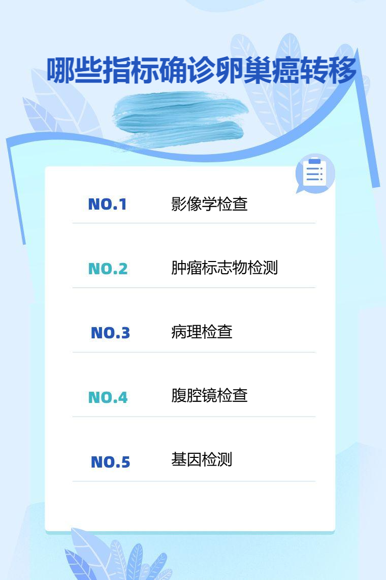 5. 基因检测:某些特定基因的改变与卵巢癌转移相关。通过基因检测,不仅能进一步了解肿瘤的生物学特性,还可为选择合适的靶向治疗药物提供依据,提高治疗的针对性和有效性。