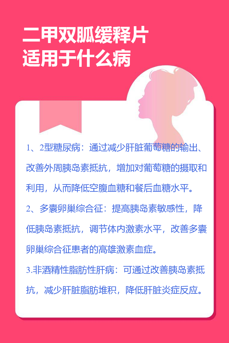 二甲双胍缓释片适用于2型糖尿病、多囊卵巢综合征、非酒精性脂肪性肝病等。