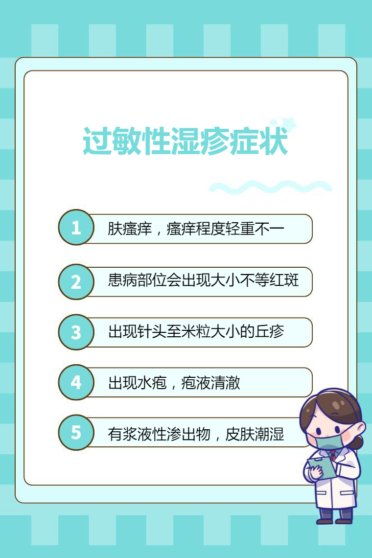 过敏性湿疹症状包括皮肤瘙痒、红斑、丘疹、水疱、渗出等。