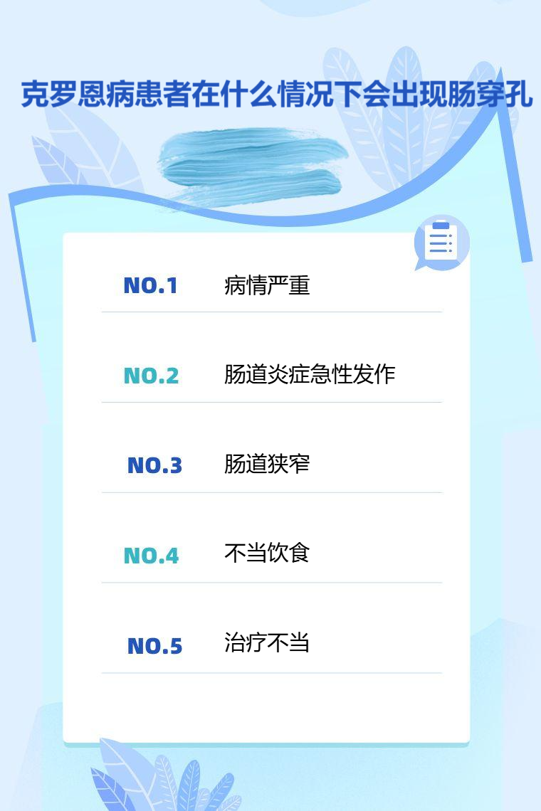 克罗恩病患者在病情严重、肠道炎症急性发作、肠道狭窄、不当饮食、治疗不当等情况下会出现肠穿孔。