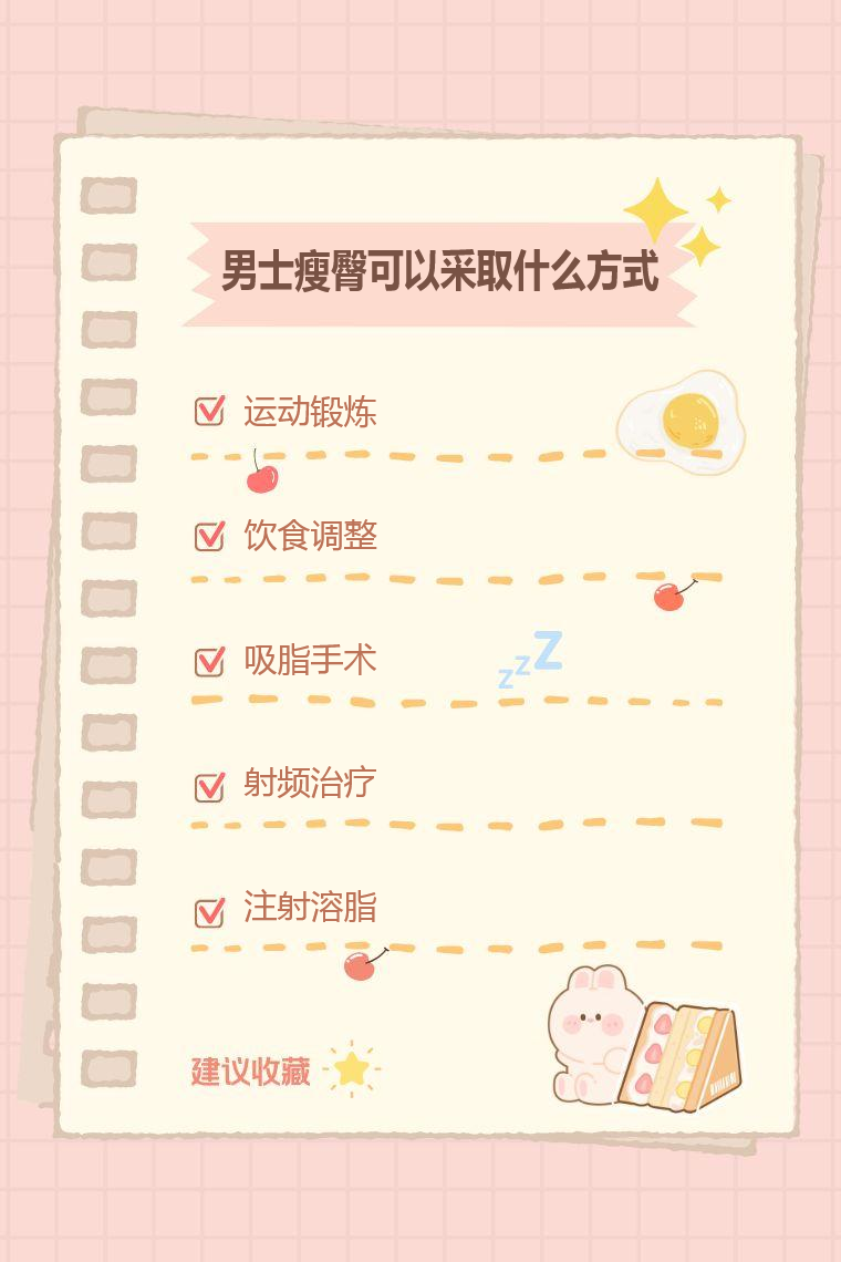 男士瘦臀可采取运动锻炼、饮食调整、吸脂手术、射频治疗、注射溶脂等方式。