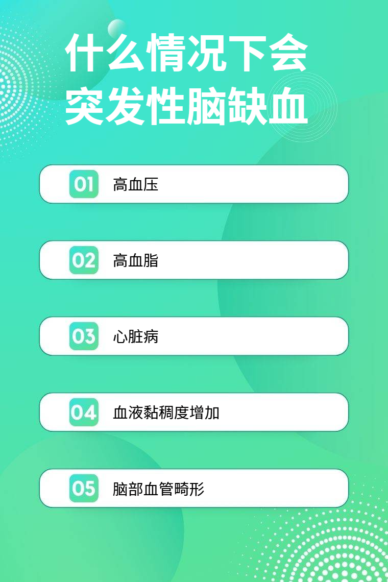 高血压、高血脂、心脏病、血液黏稠度增加、脑部血管畸形等情况会突发性脑缺血。