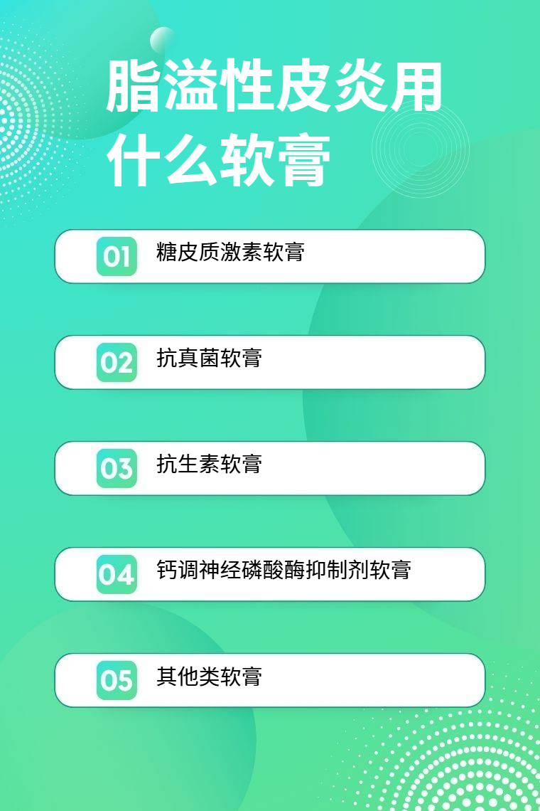 脂溢性皮炎常用的软膏有糖皮质激素软膏、抗真菌软膏、抗生素软膏、钙调神经磷酸酶抑制剂软膏、其他类软膏等。