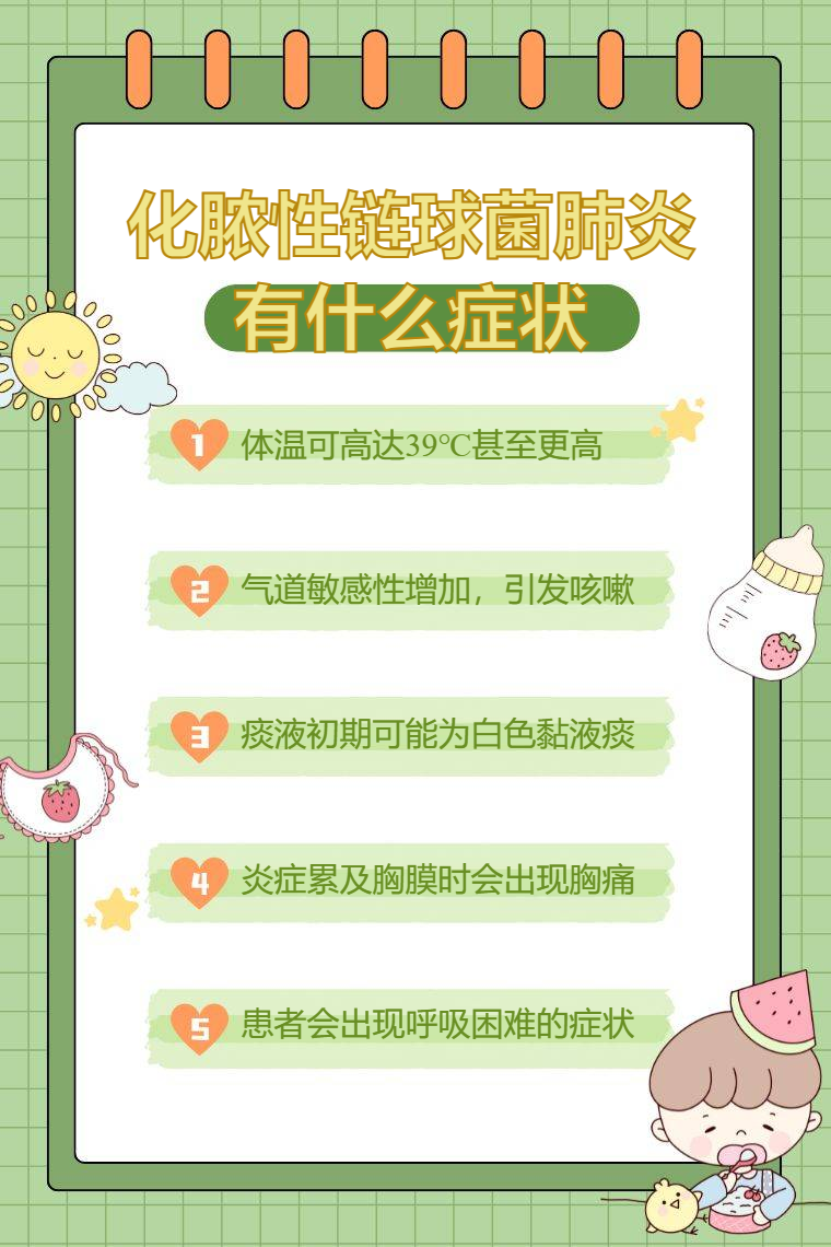 化脓性链球菌肺炎的症状有发热、咳嗽、咳痰、胸痛、呼吸困难等。