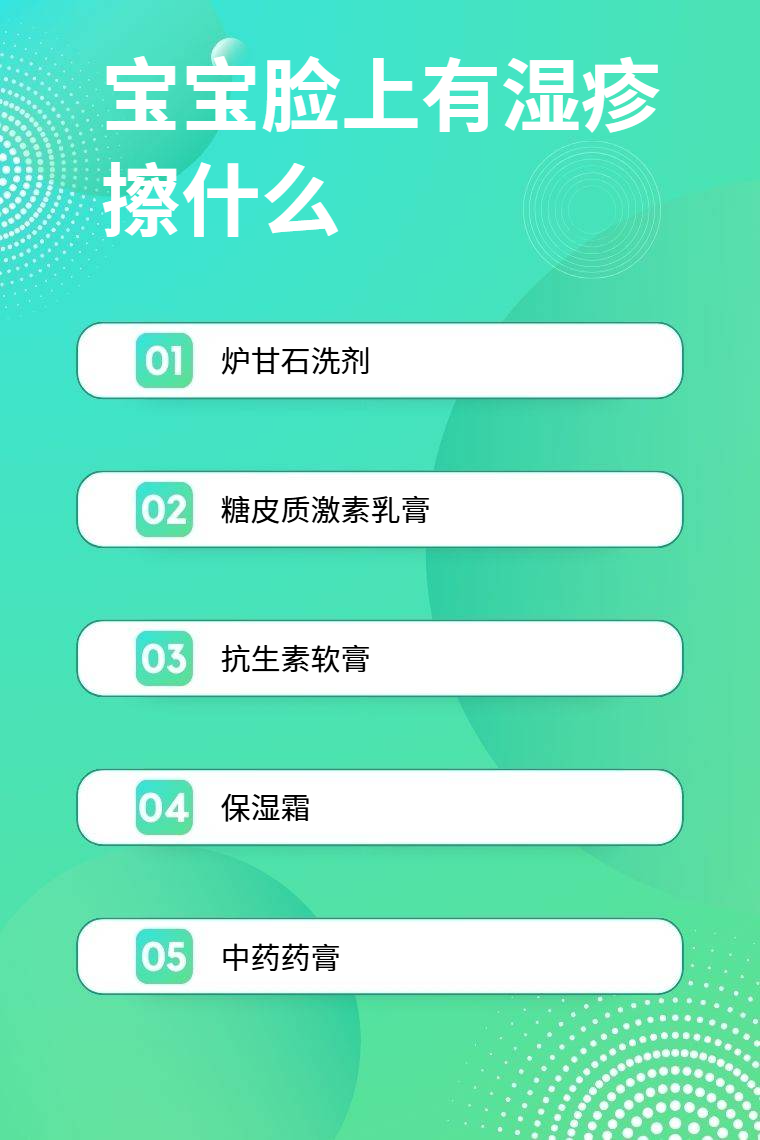宝宝脸上有湿疹可擦炉甘石洗剂、糖皮质激素乳膏、抗生素软膏、保湿霜、中药药膏等。