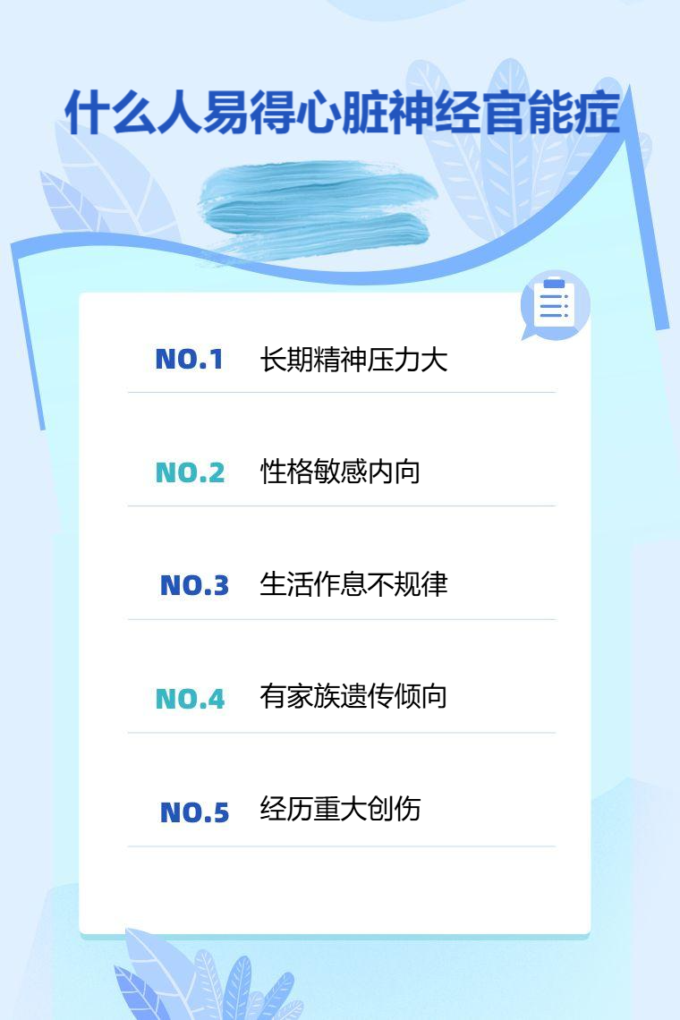 1. 长期精神压力大:长期处于高强度工作、学习或生活压力下,大脑神经一直处于紧张状态,易导致神经功能失调,影响心脏的正常调节功能,从而增加心脏神经官能症的发病几率。