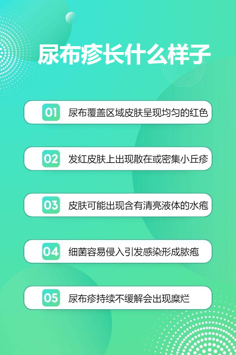 1. 皮肤发红:尿布覆盖区域的皮肤呈现均匀的红色,边界相对清晰,这是由于尿液、粪便等刺激,导致皮肤血管扩张,局部充血所致,是尿布疹较为初期和常见的表现。