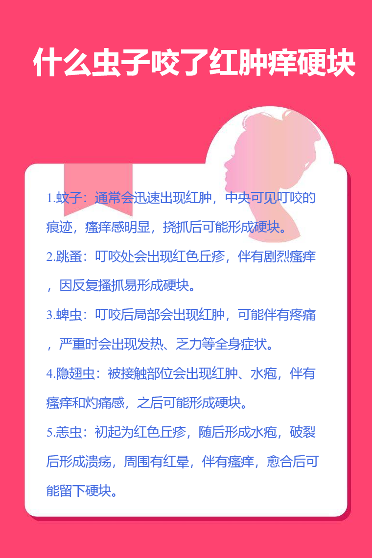 蚊子、跳蚤、蜱虫、隐翅虫、恙虫等虫子咬了可能出现红肿痒硬块。