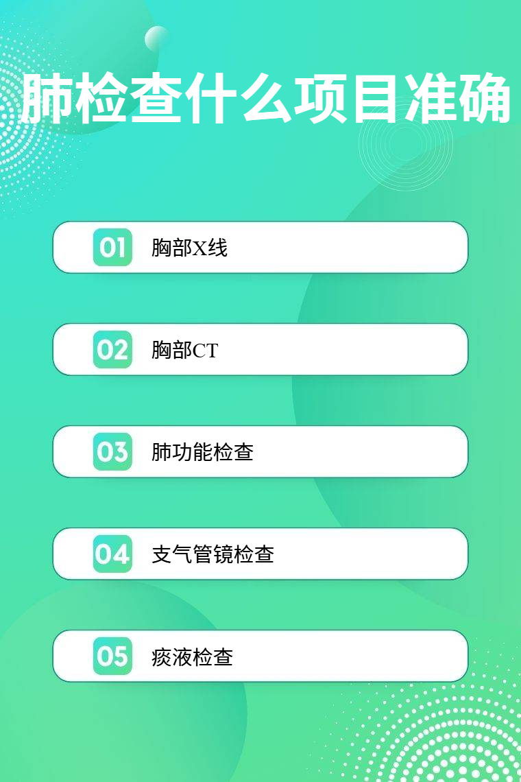 肺检查较为准确的项目有胸部X线、胸部CT、肺功能检查、支气管镜检查、痰液检查等。