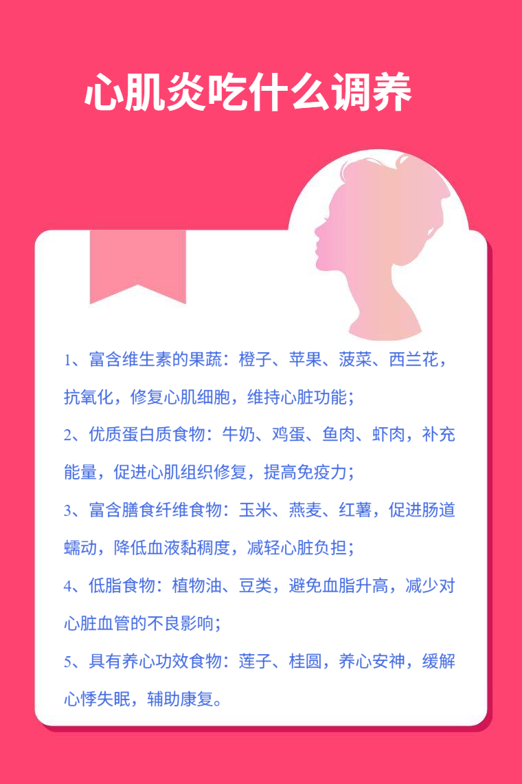 心肌炎患者在饮食调养时,要注意饮食均衡,避免暴饮暴食,保持规律作息,避免过度劳累。同时,严格按照医生嘱咐进行治疗和康复,定期复查,以便及时调整治疗和调养方案。