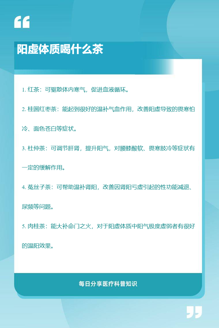 阳虚体质者在日常生活中,除了适当饮用这些茶,还应注意保暖,尤其是腰腹、脚部等部位。避免食用生冷食物,规律作息,保证充足睡眠。适当进行运动,如散步、太极拳等,以促进阳气的生发。若阳虚症状较为严重,应及时就医,在医生的指导下进行调理。