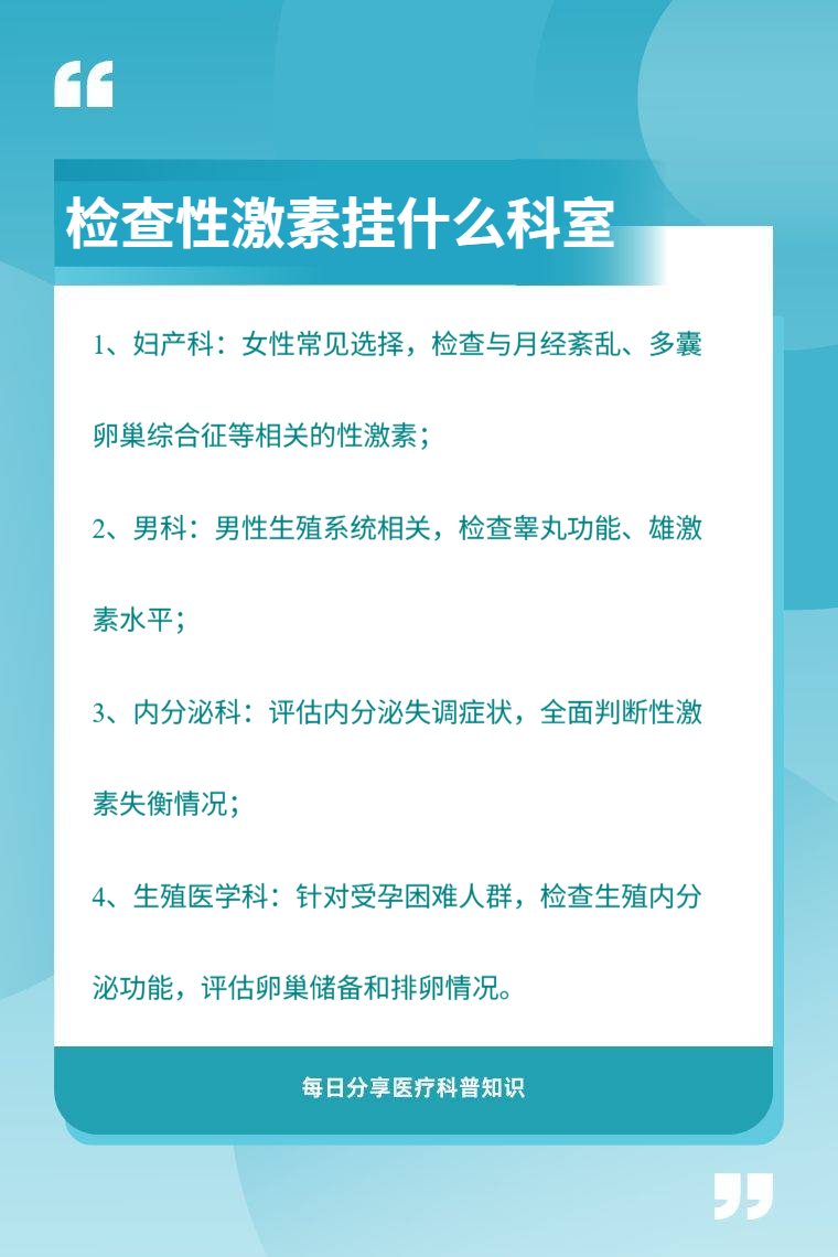 检查性激素可挂妇产科、男科、内分泌科、生殖医学科等。