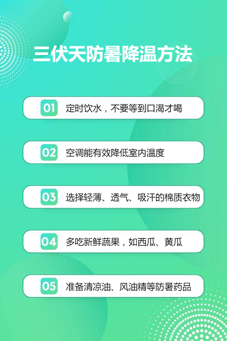 三伏天防暑降温方法有合理补充水分、使用空调风扇、穿着合适衣物、调整饮食结构、涂抹防暑药品等。