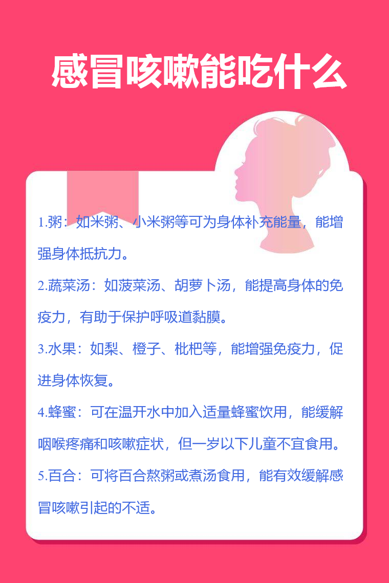 感冒咳嗽时可选择清淡易消化的食物,如粥、蔬菜汤、水果、蜂蜜、百合等。