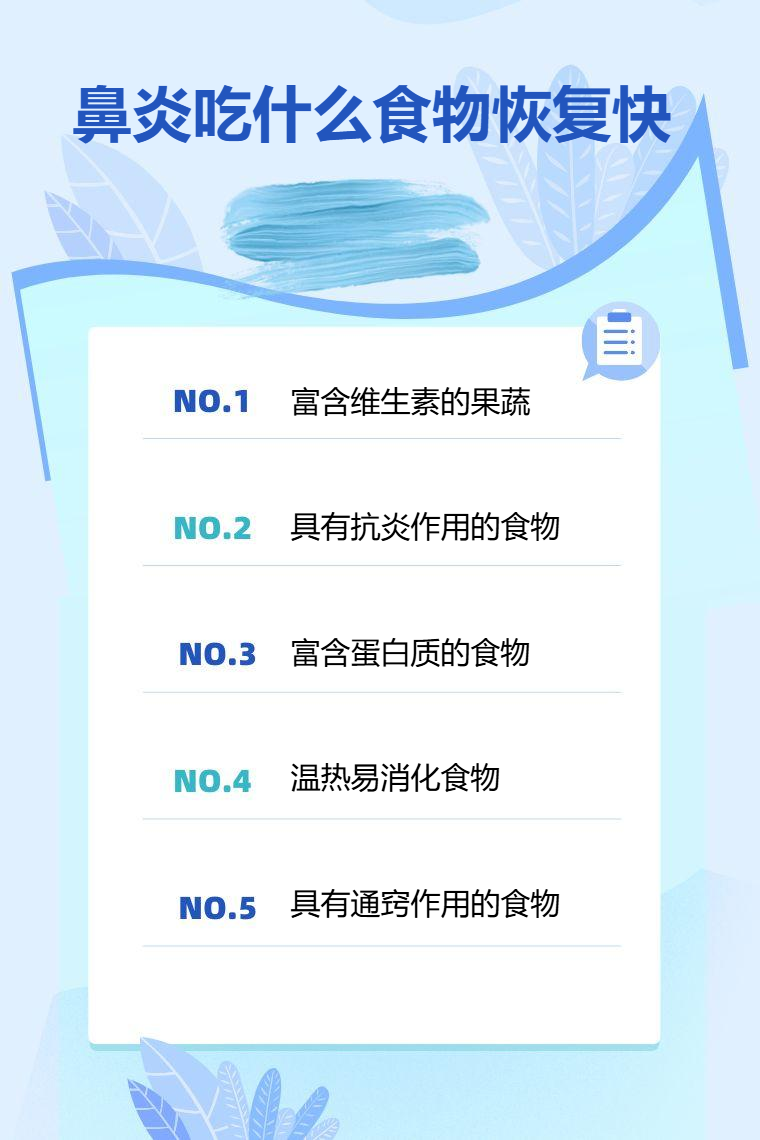 鼻炎患者可通过食用富含维生素的果蔬、具有抗炎作用的食物、富含蛋白质的食物、温热易消化食物、具有通窍作用的食物等促进恢复。