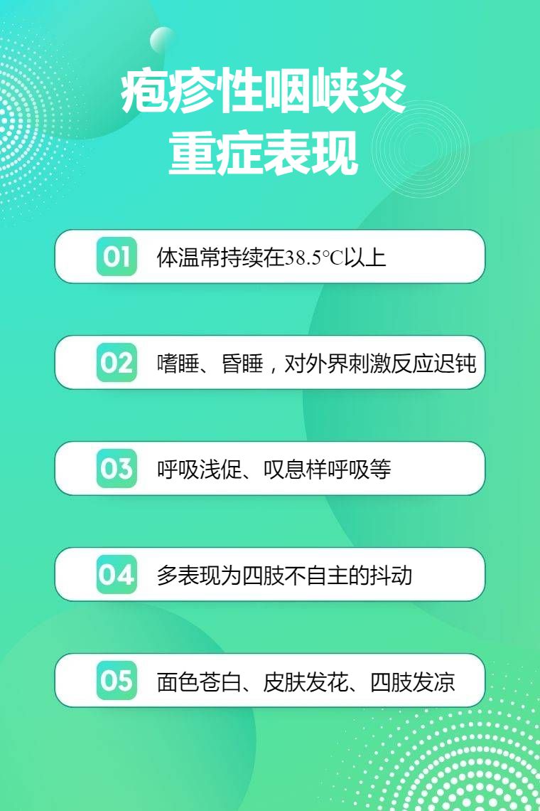 疱疹性咽峡炎出现重症表现时病情危急,需及时就医。日常要注意保持环境清洁、空气流通,养成良好卫生习惯,勤洗手、勤消毒。患病后积极配合治疗,严格遵医嘱用药,密切观察症状变化,若有异常及时复诊。
