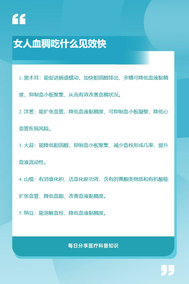 女人血稠可通过食用黑木耳、洋葱、大蒜、山楂、纳豆等改善。