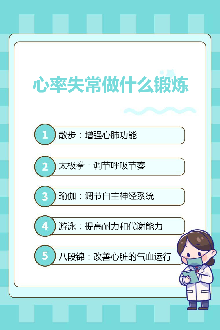 心律失常患者可选择的锻炼有散步、太极拳、瑜伽、游泳、八段锦等。