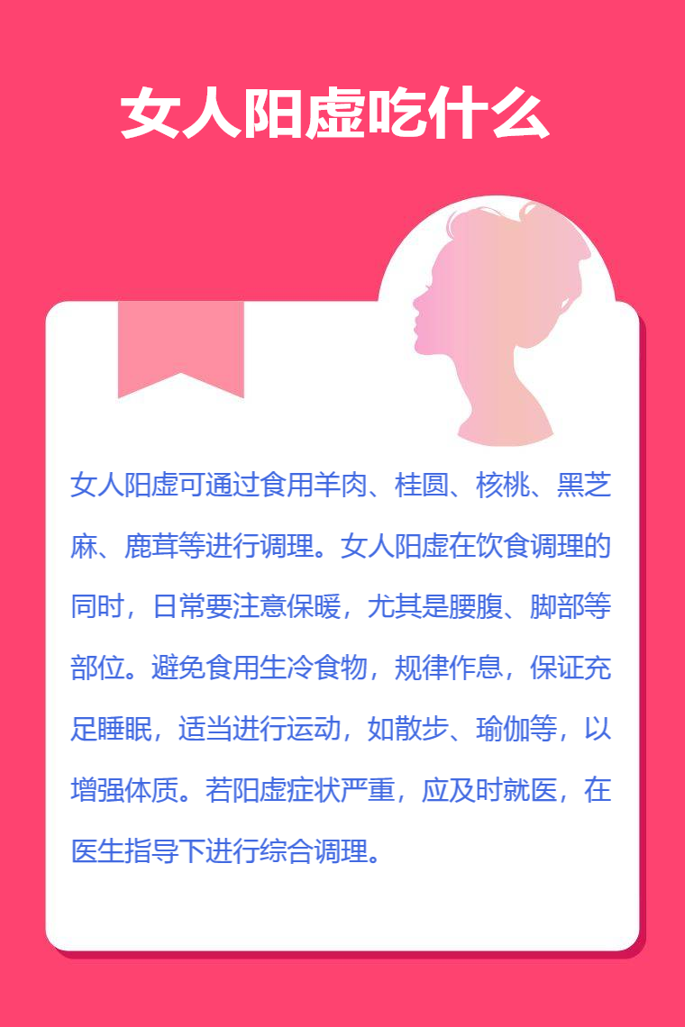 女人阳虚可通过食用羊肉、桂圆、核桃、黑芝麻、鹿茸等进行调理。