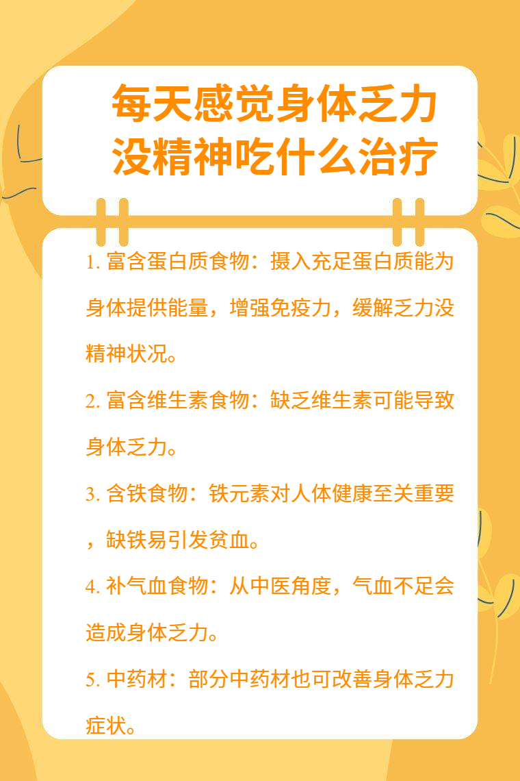 日常还需保持规律作息,避免熬夜,保证充足睡眠,让身体得到充分休息;适当进行运动锻炼,促进血液循环和新陈代谢,增强体质。若身体乏力没精神症状持续不缓解或加重,应及时就医检查,在医生指导下合理治疗。