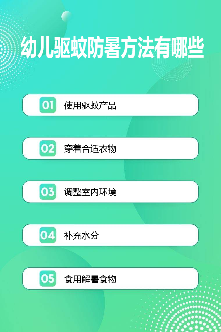 幼儿驱蚊防暑方法有使用驱蚊产品、穿着合适衣物、调整室内环境、补充水分、食用解暑食物等。