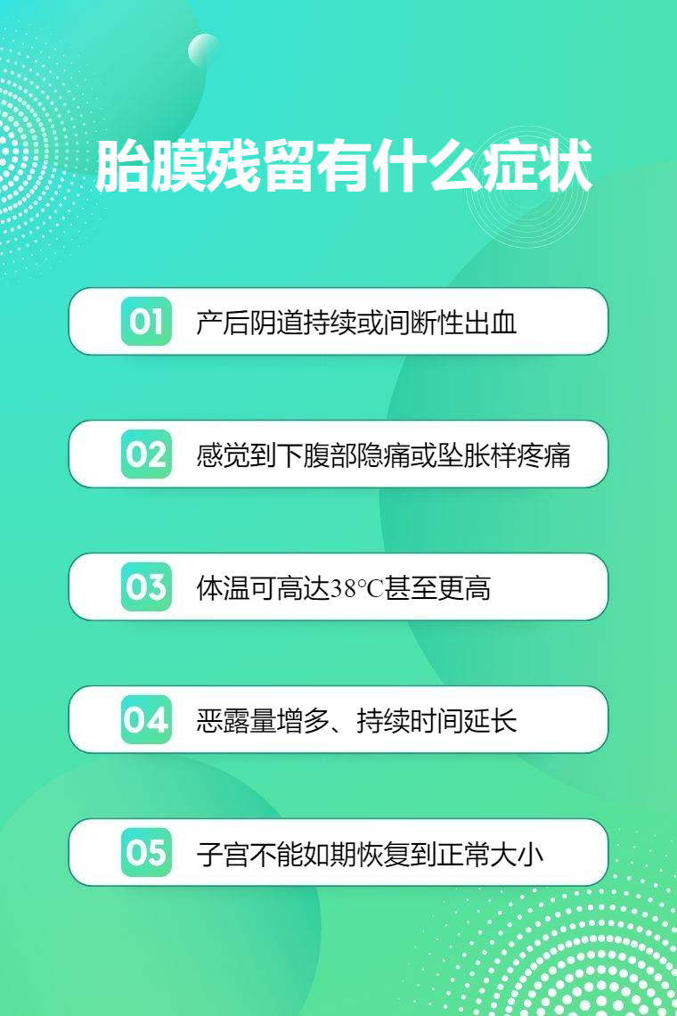 3. 发热:当胎膜残留合并感染时,患者可出现发热症状,体温可高达38℃甚至更高,同时可能伴有寒战等全身症状。
