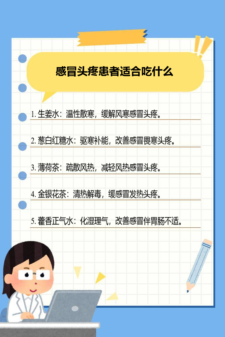 感冒头疼患者可熬生姜水、葱白红糖水、薄荷茶、金银花茶、藿香正气水等。
