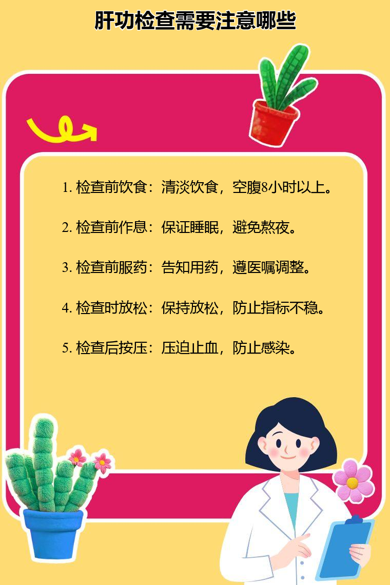 肝功检查需要注意检查前饮食、作息、服药情况、检查时放松、检查后按压等。
