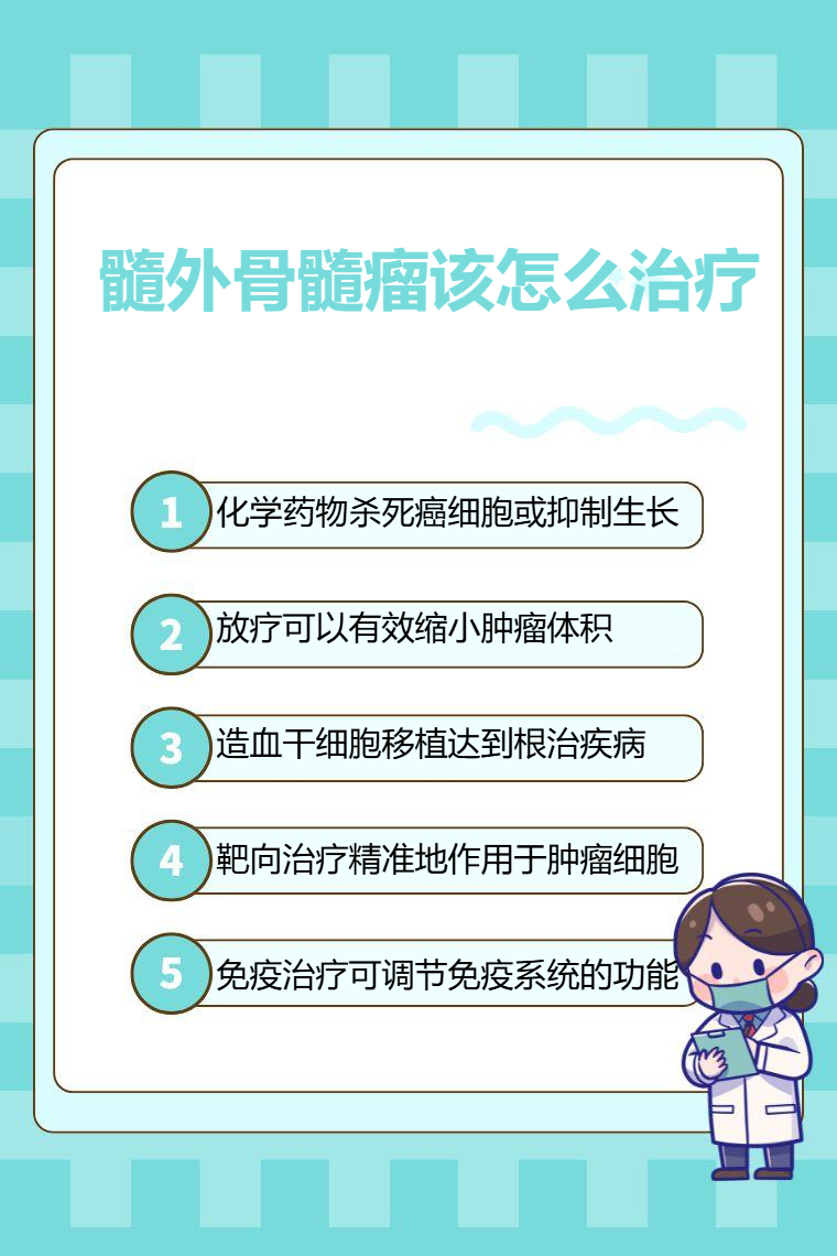 髓外骨髓瘤的治疗方法有化疗、放疗、造血干细胞移植、靶向治疗、免疫治疗等。