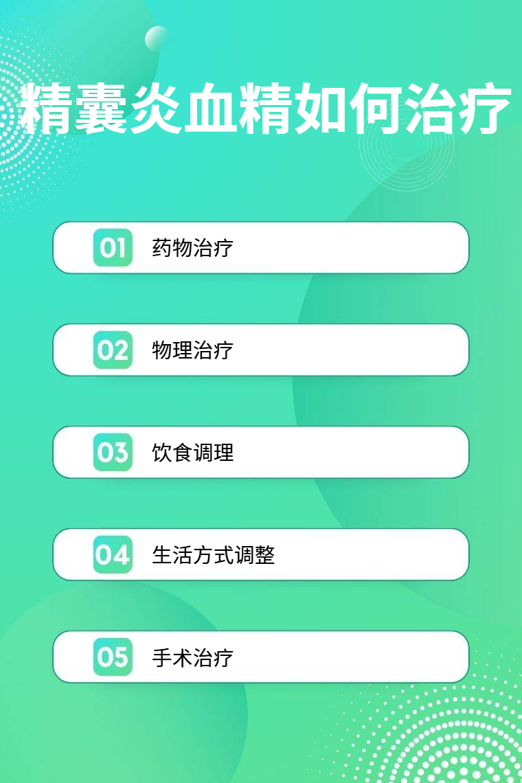 精囊炎血精的治疗方法有药物治疗、物理治疗、饮食调理、生活方式调整、手术治疗等。