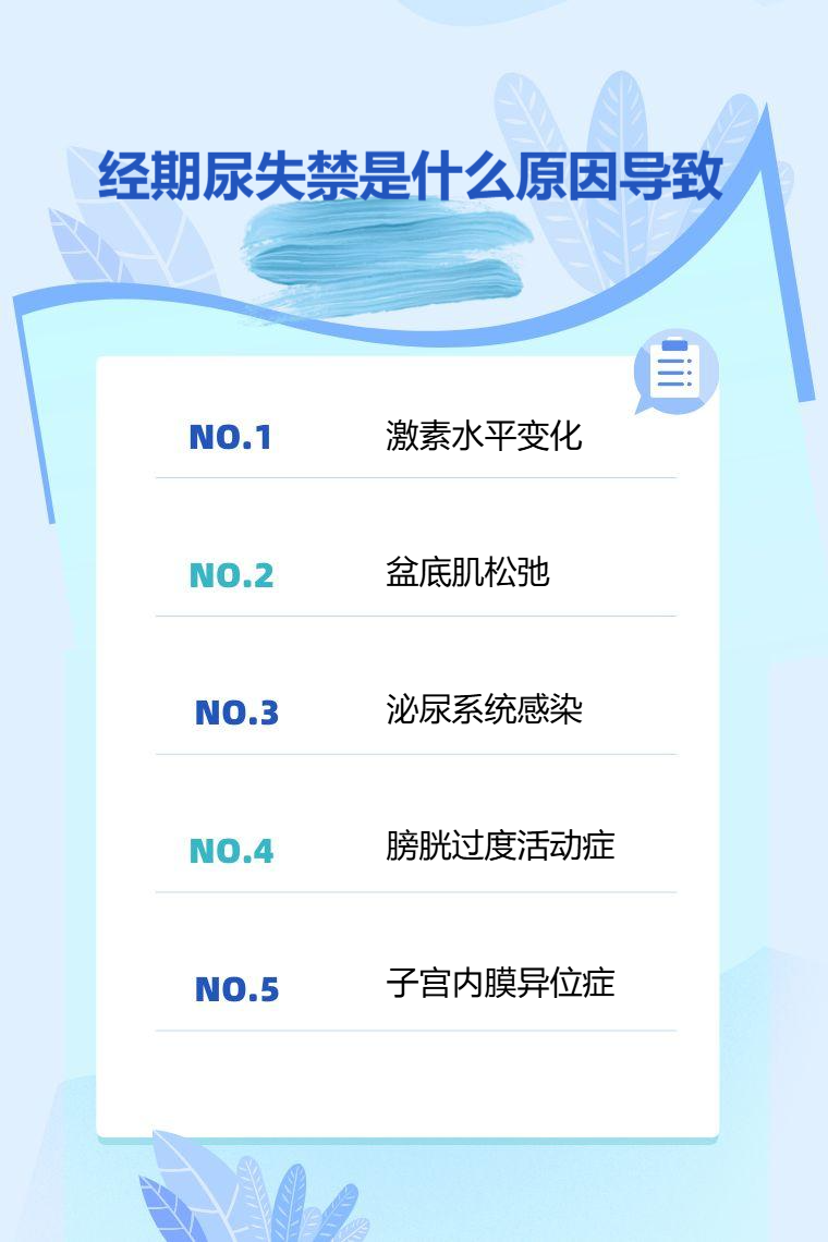 经期尿失禁常见原因有激素水平变化、盆底肌松弛、泌尿系统感染、膀胱过度活动症、子宫内膜异位症等。