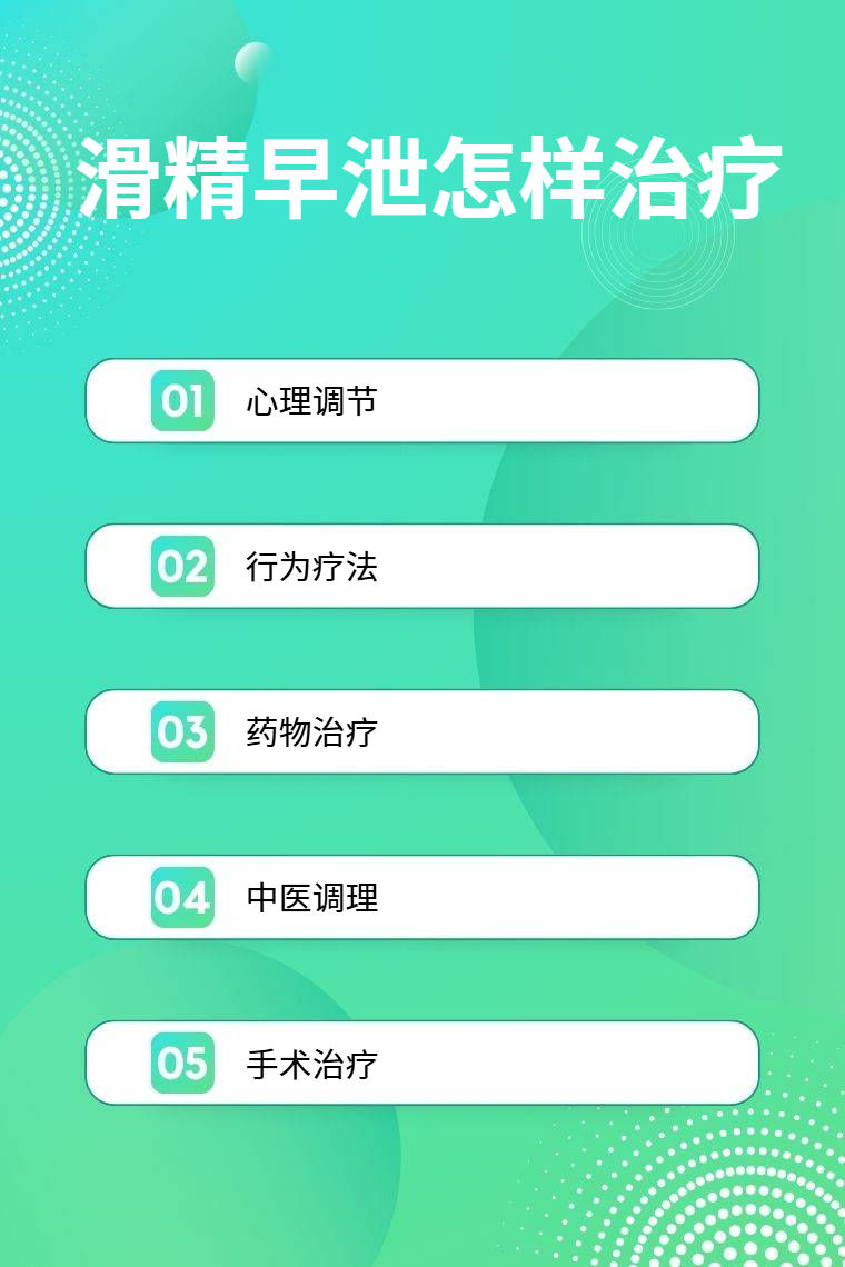 滑精早泄的治疗方法包括心理调节、行为疗法、药物治疗、中医调理、手术治疗等。