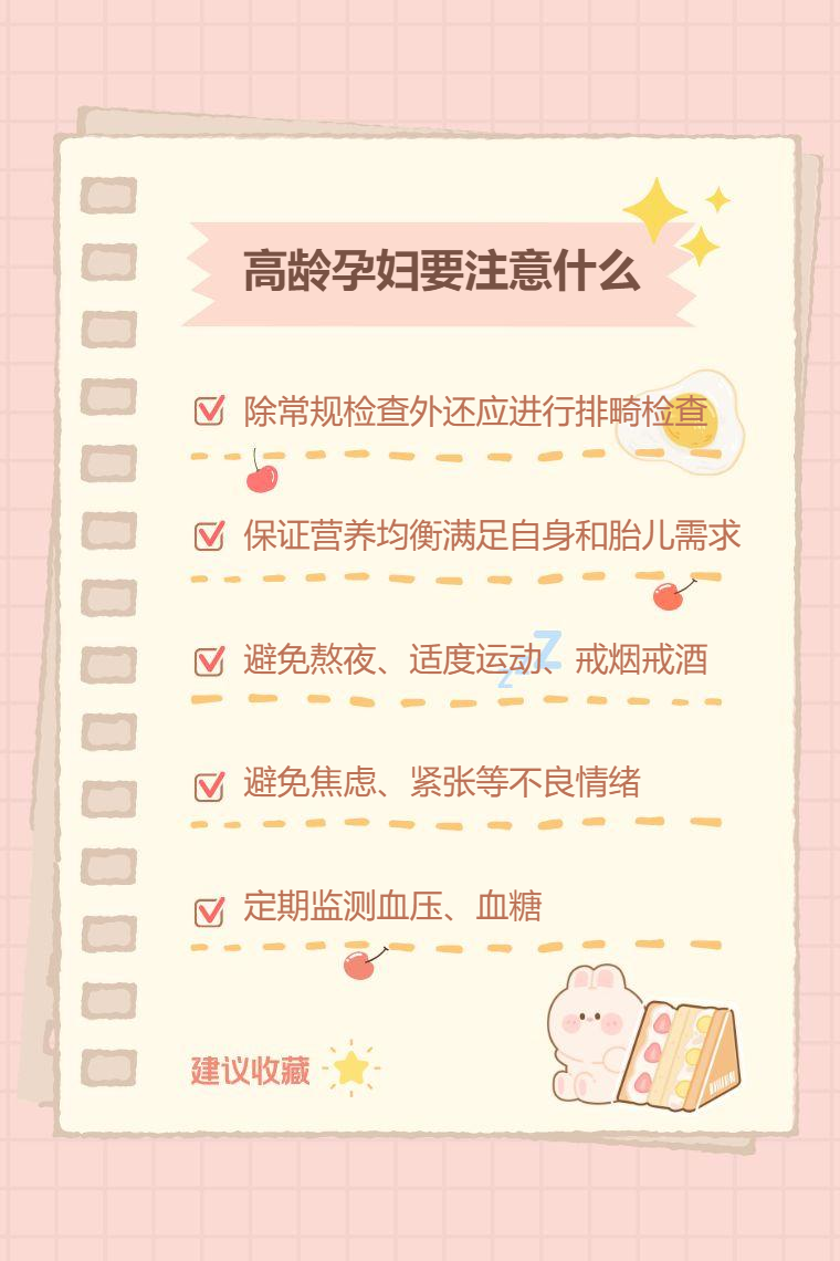 5. 预防并发症:由于高龄孕妇患妊娠期高血压、糖尿病等并发症风险较高,要注意合理饮食、适当运动,定期监测血压、血糖,如有异常及时就医治疗。