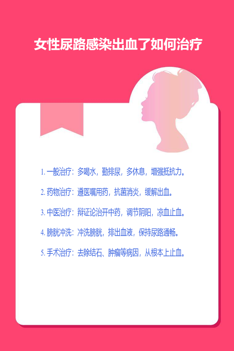 女性尿路感染出血可通过一般治疗、药物治疗、中医治疗、膀胱冲洗、手术治疗等方法进行应对。