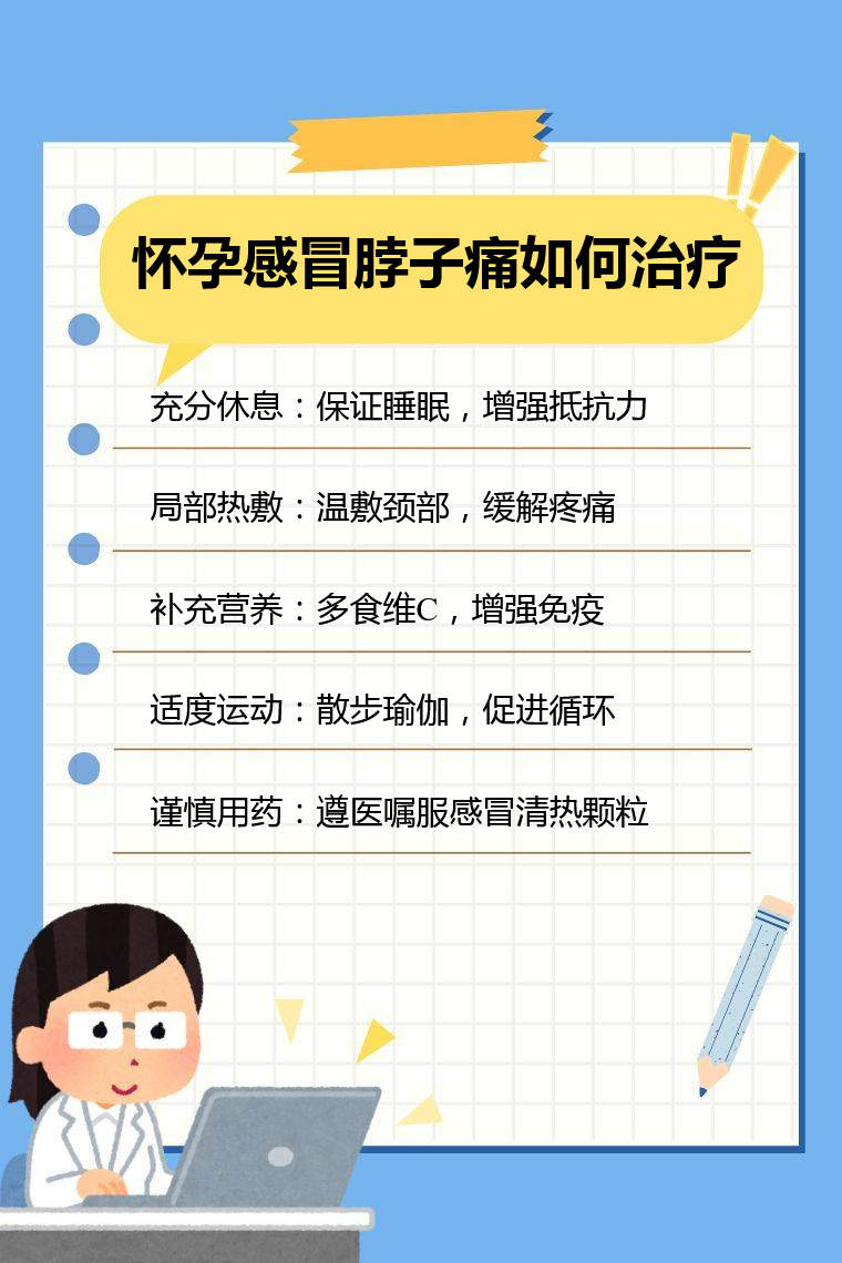 怀孕感冒脖子痛可通过休息、局部热敷、补充营养、适当运动、药物治疗等方法缓解。