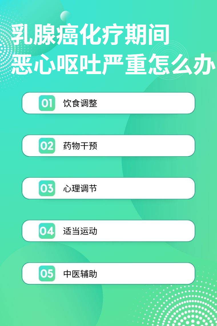 乳腺癌化疗期间恶心呕吐严重可通过饮食调整、药物干预、心理调节、适当运动、中医辅助等缓解。