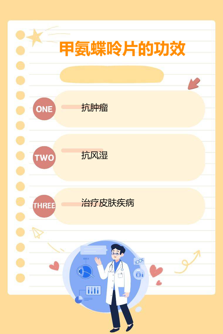 甲氨蝶呤片具有抗肿瘤、抗风湿、治疗皮肤疾病等功效。