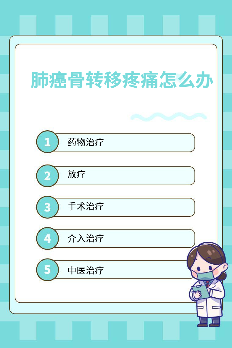 肺癌骨转移疼痛可通过药物治疗、放疗、手术治疗、介入治疗、中医治疗等缓解。