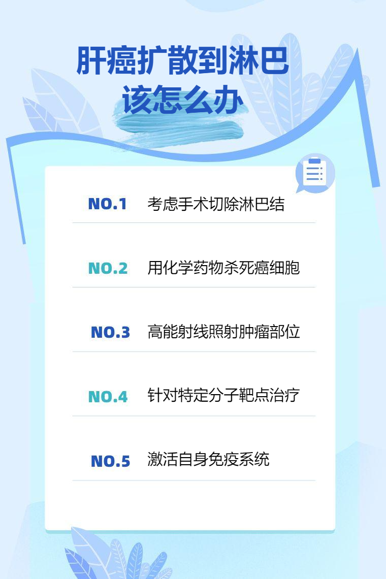 肝癌扩散到淋巴可通过手术治疗、化疗、放疗、靶向治疗、免疫治疗等。