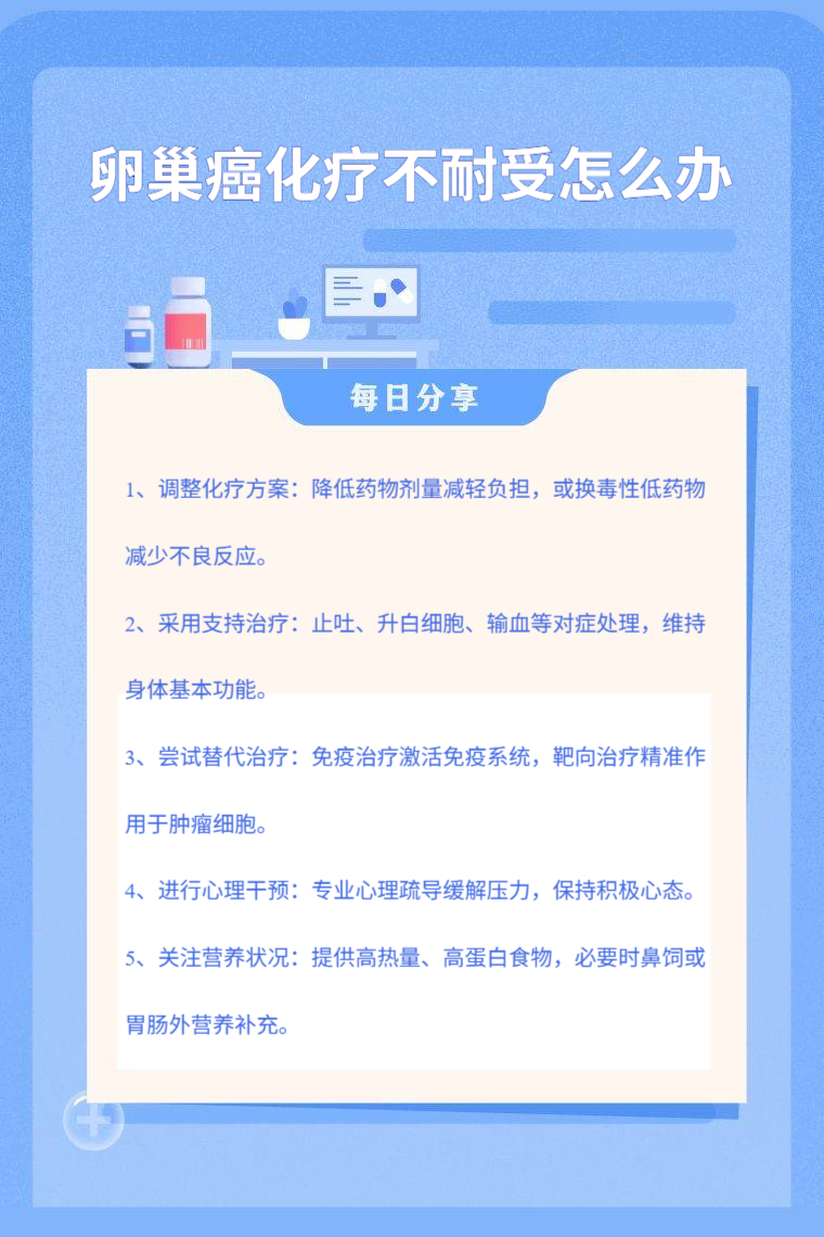 卵巢癌化疗不耐受可通过调整化疗方案、采用支持治疗、尝试替代治疗、进行心理干预、关注营养状况等应对。