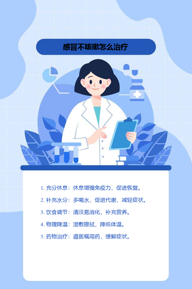 感冒不咳嗽可通过休息、补充水分、饮食调节、物理降温、药物治疗等方法来治疗。