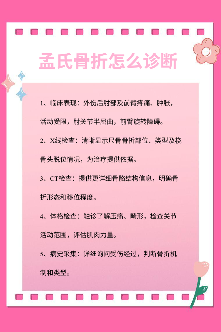 孟氏骨折的诊断主要依靠临床表现、X线检查、CT检查、体格检查、病史采集等。