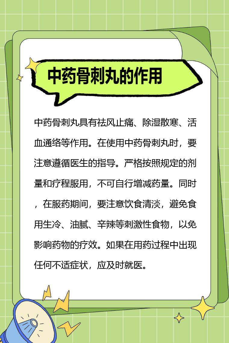中药骨刺丸具有祛风止痛、除湿散寒、活血通络等作用。