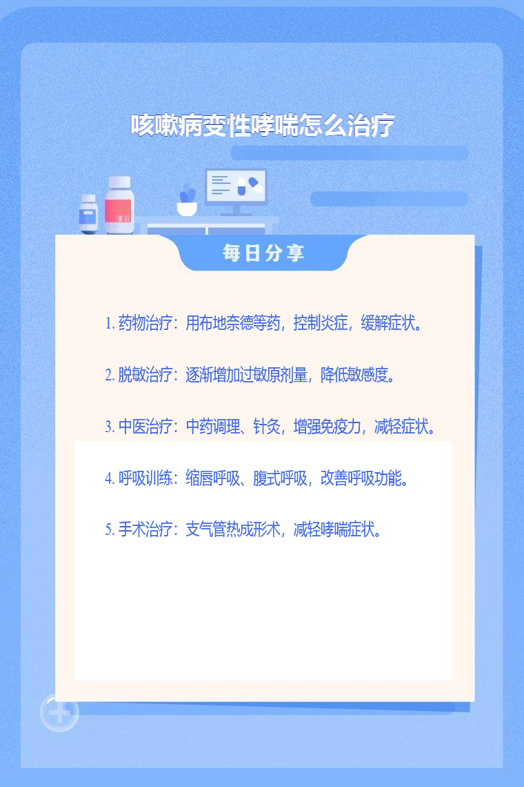 5. 手术治疗:对于药物治疗效果不佳、病情严重的咳嗽变异性哮喘患者,可考虑支气管热成形术。该手术通过射频消融减少气道平滑肌数量,降低气道收缩能力,从而减轻哮喘症状,提高患者生活质量。