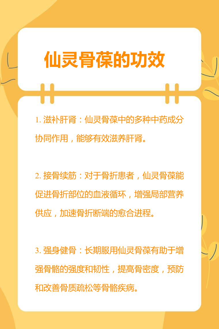 仙灵骨葆具有滋补肝肾、接骨续筋、强身健骨等功效。