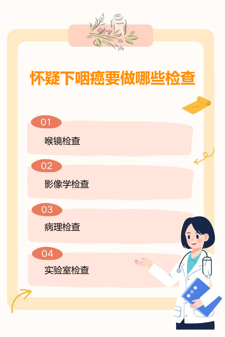 怀疑下咽癌要做喉镜检查、影像学检查、病理检查、实验室检查等。