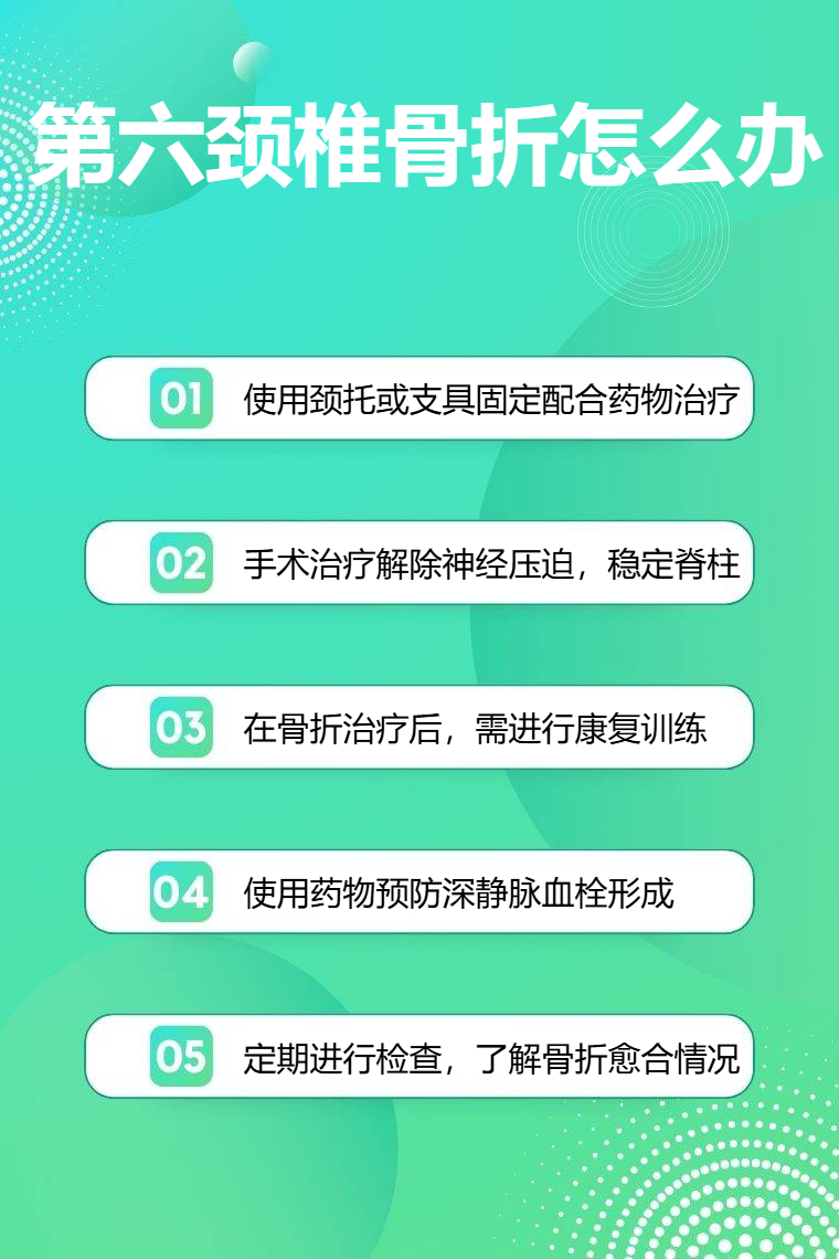 第六颈椎骨折的应对方式有保守治疗、手术治疗、康复训练、并发症防治、定期复查等。